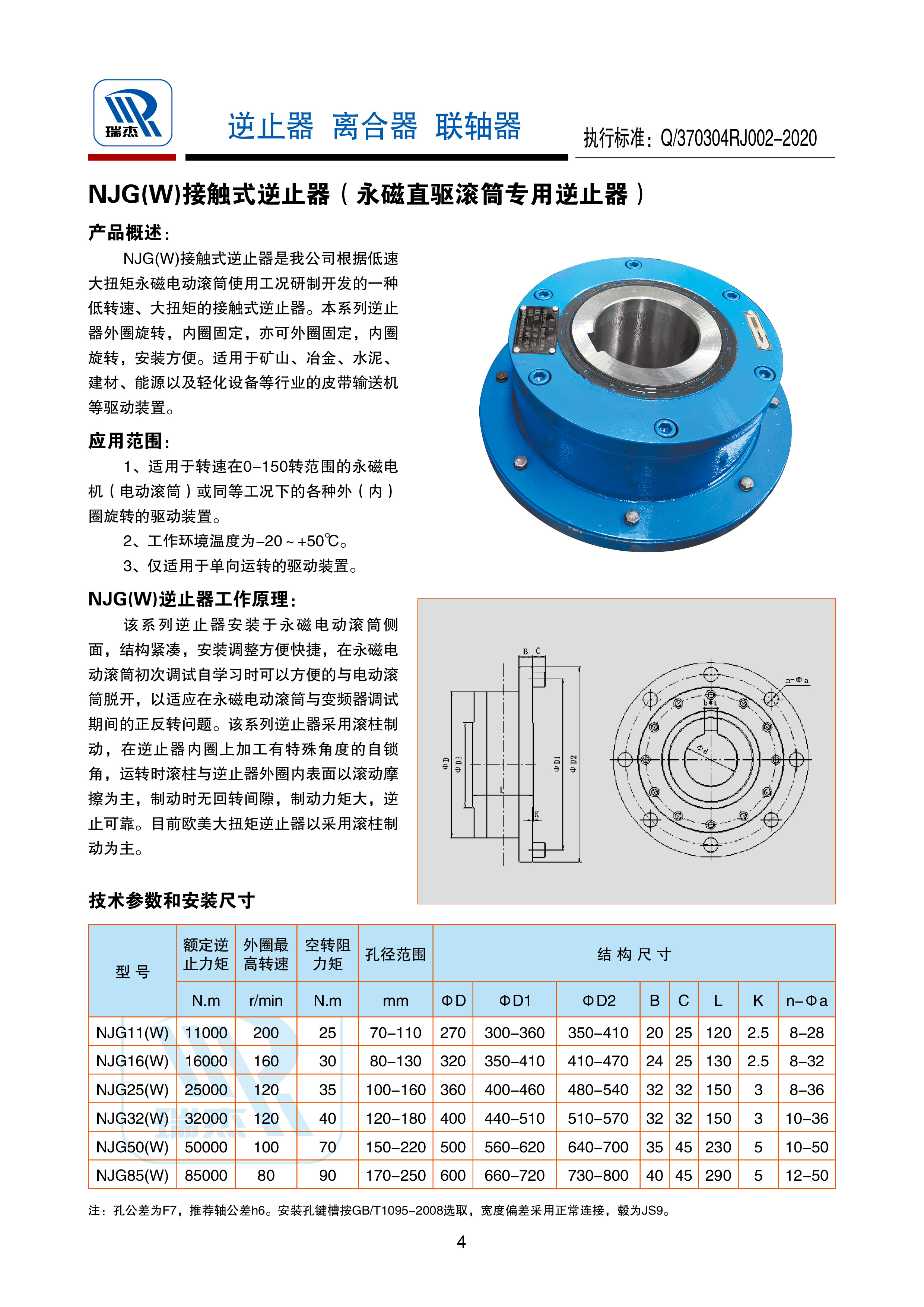 NJG(W)型永磁直驅(qū)電動(dòng)滾筒專(zhuān)用逆止器、外圈旋轉(zhuǎn)逆止器